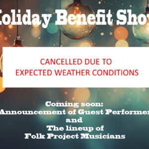 Holiday Benefit Show for the Morristown Unitarian Universalist Fellowship. Featuring Allison Strong and top Folk Project performers. Caroling at 7PM.